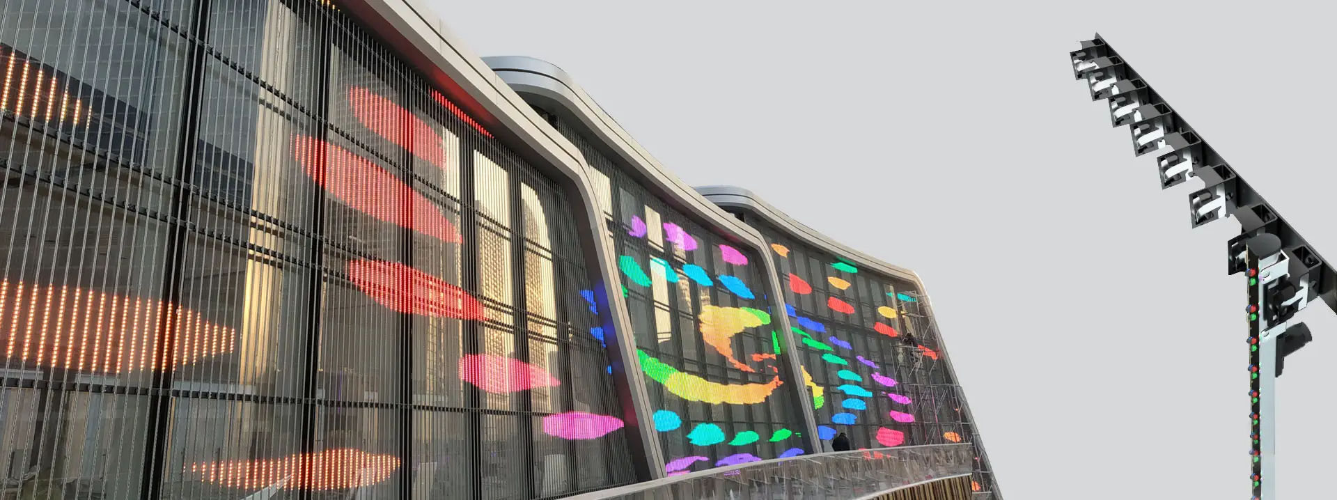Simple frame structure or stainless steel wire installation enable the B stripes to be installed very easy, fast, and tidy, fits for lage-sized media facade installations, like skycrapers, business buildings, shoppingmall, statium, city landmark;